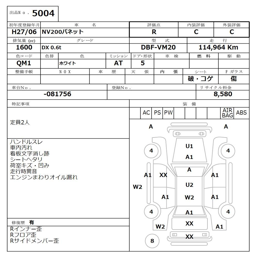 NISSAN NV200 VANETTE DX 0.6t - лот 5004