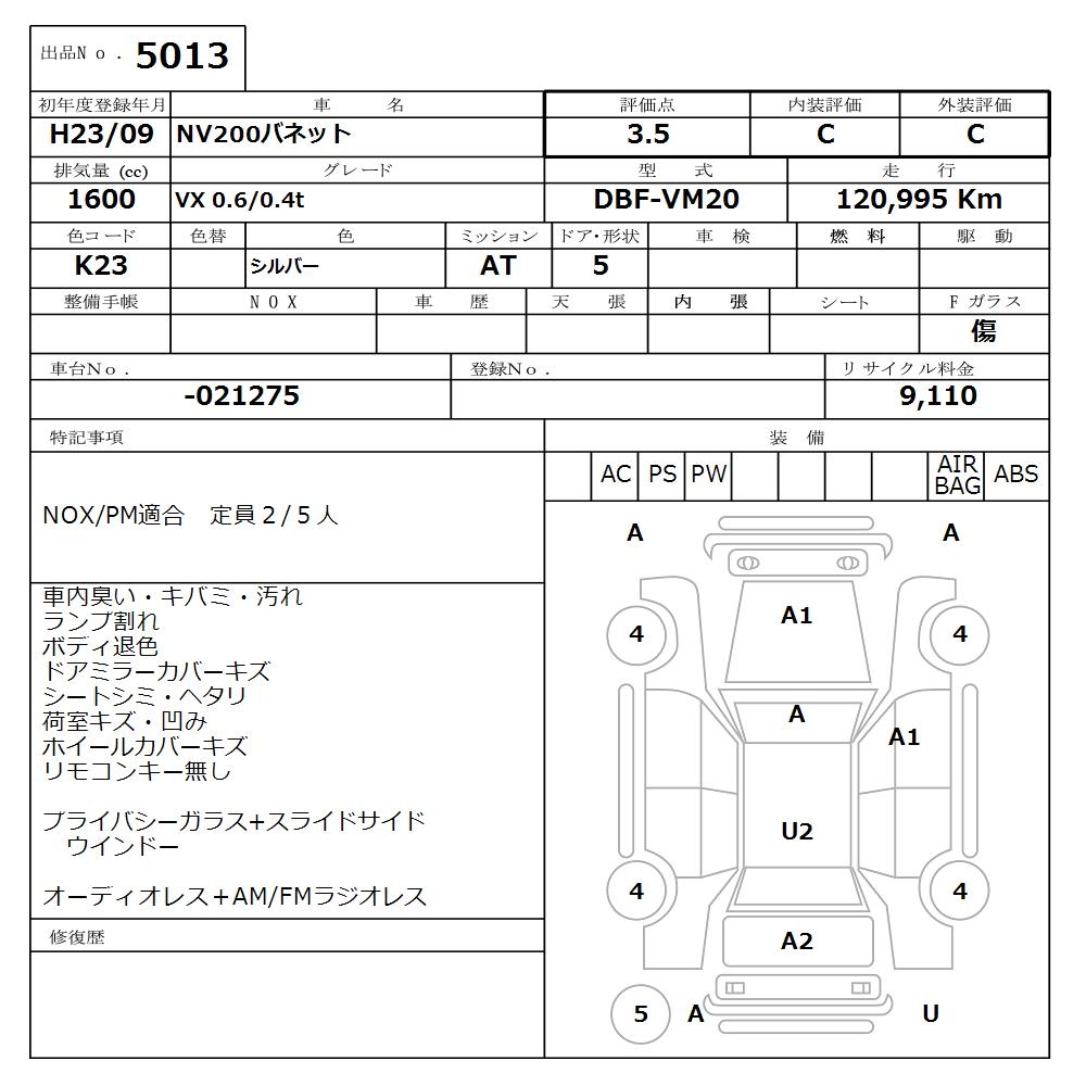 Все аукционы NISSAN NV200 VANETTE