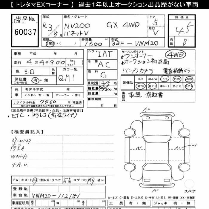 NISSAN NV200 VANETTE 4WD GX - лот 60037