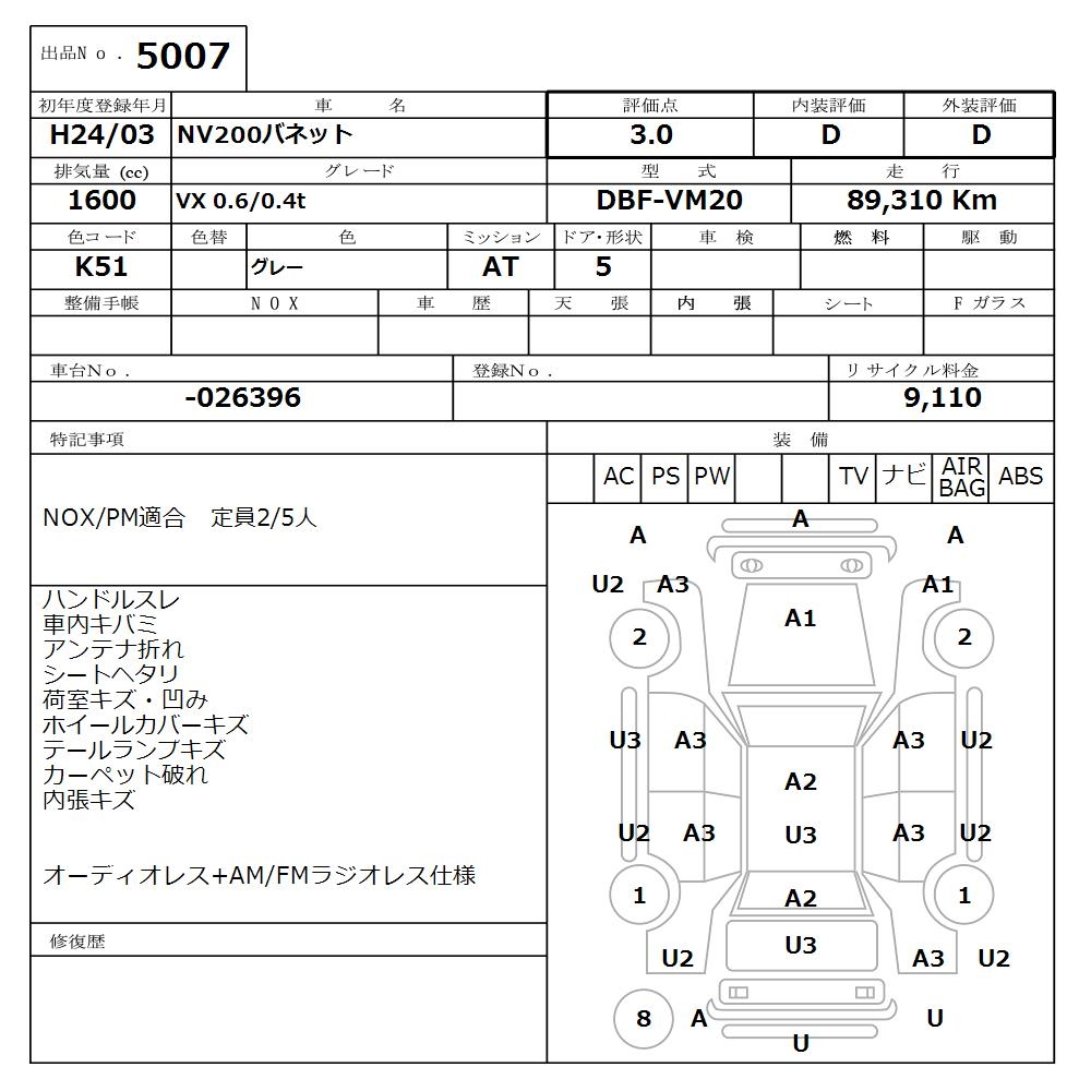 NISSAN NV200 VANETTE VX 0.6/0.4t - лот 5007