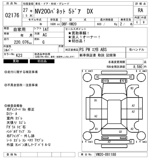 NISSAN NV200 VANETTE - лот 2176