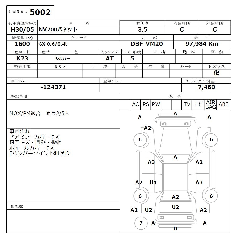 NISSAN NV200 VANETTE - лот 5002
