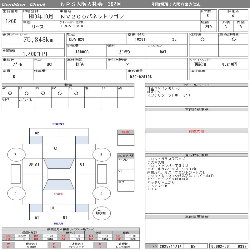Все аукционы NISSAN NV200 VANETTE