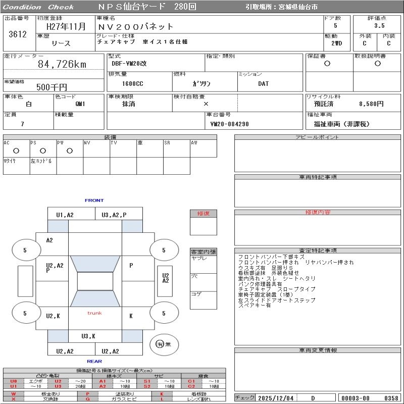 Все аукционы NISSAN NV200 VANETTE