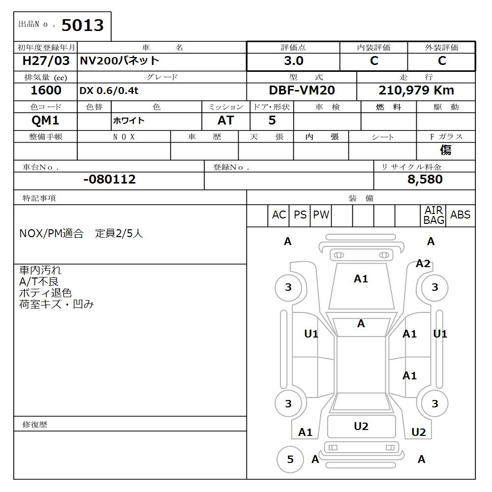 NISSAN NV200 VANETTE - лот 5013