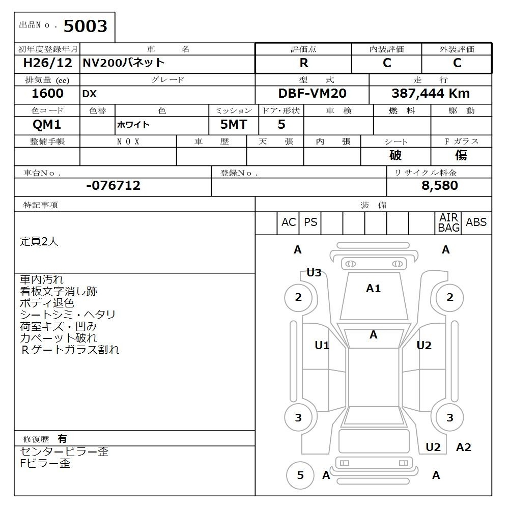 NISSAN NV200 VANETTE - лот 5003