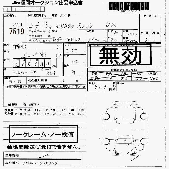 NISSAN NV200 VANETTE - лот 7519