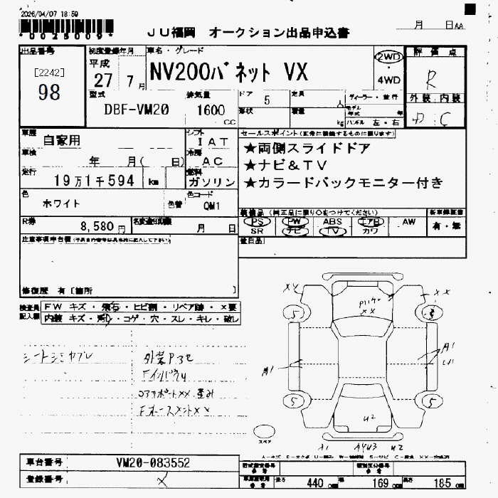 Все аукционы NISSAN NV200 VANETTE
