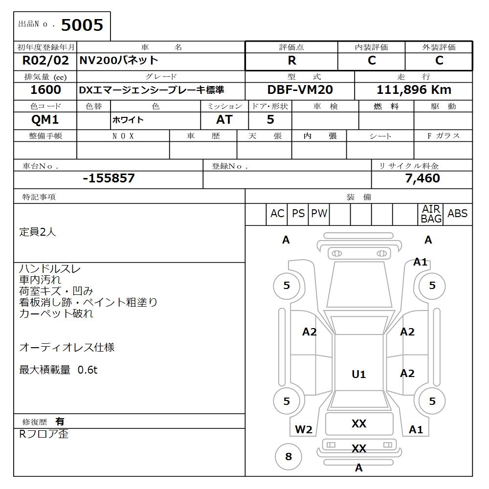 NISSAN NV200 VANETTE - лот 5005