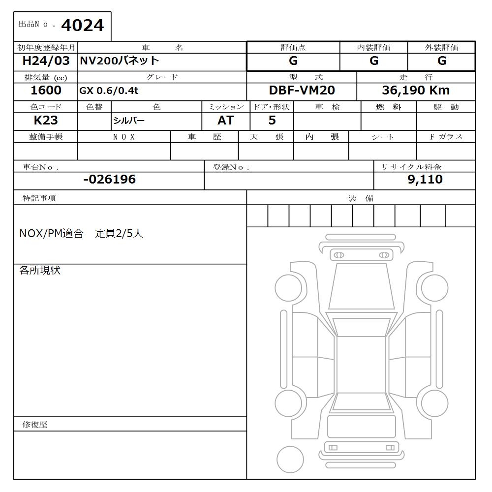 NISSAN NV200 VANETTE - лот 4024