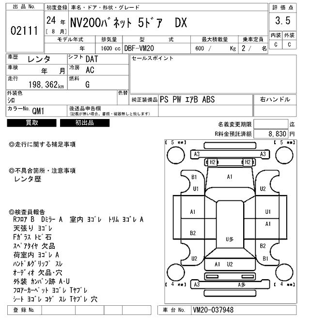 Все аукционы NISSAN NV200 VANETTE