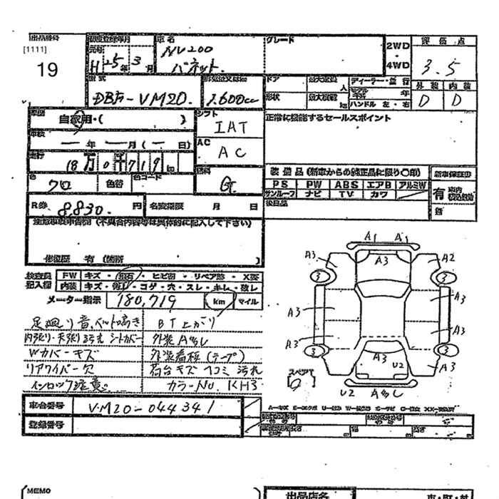 Все аукционы NISSAN NV200 VANETTE