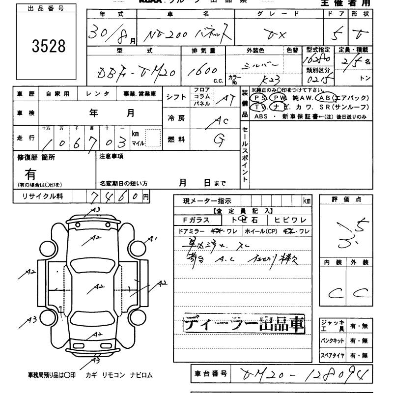 Все аукционы NISSAN NV200 VANETTE VAN