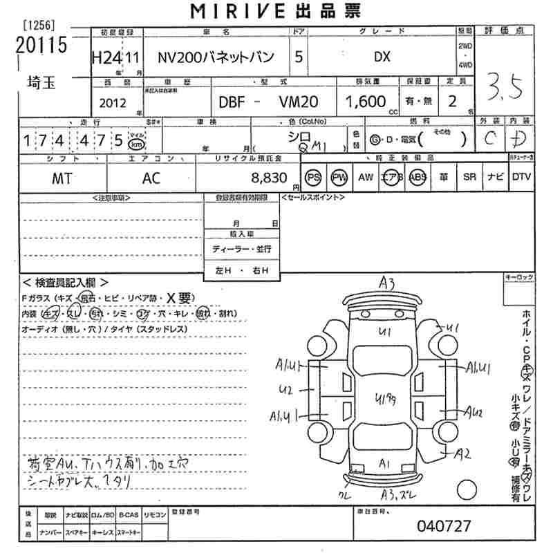 Все аукционы NISSAN NV200 VANETTE VAN