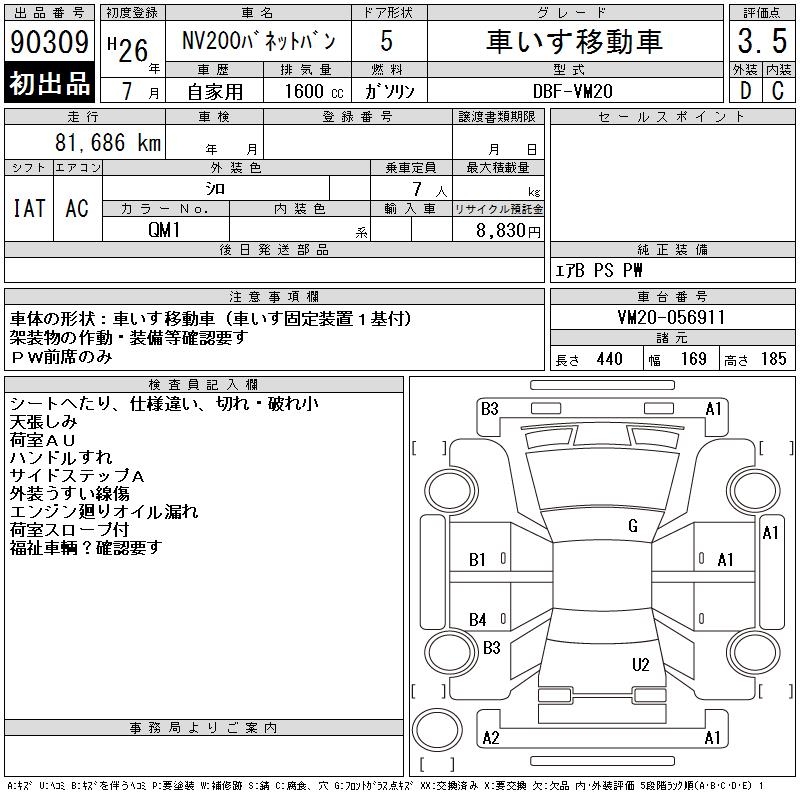 NISSAN NV200 VANETTE VAN - лот 90309