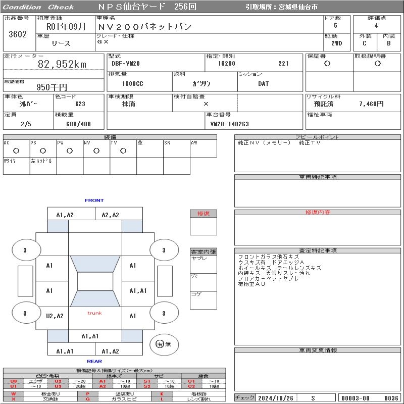 NISSAN NV200 VANETTE VAN - лот 3602