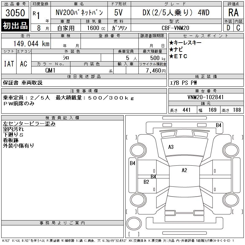 NISSAN NV200 VANETTE VAN - лот 3050