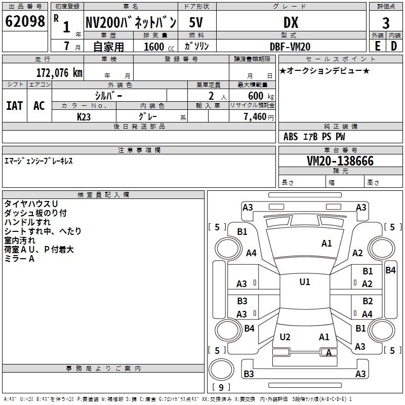 NISSAN NV200 VANETTE VAN - лот 62098