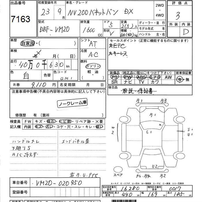 NISSAN NV200 VANETTE VAN - лот 7163