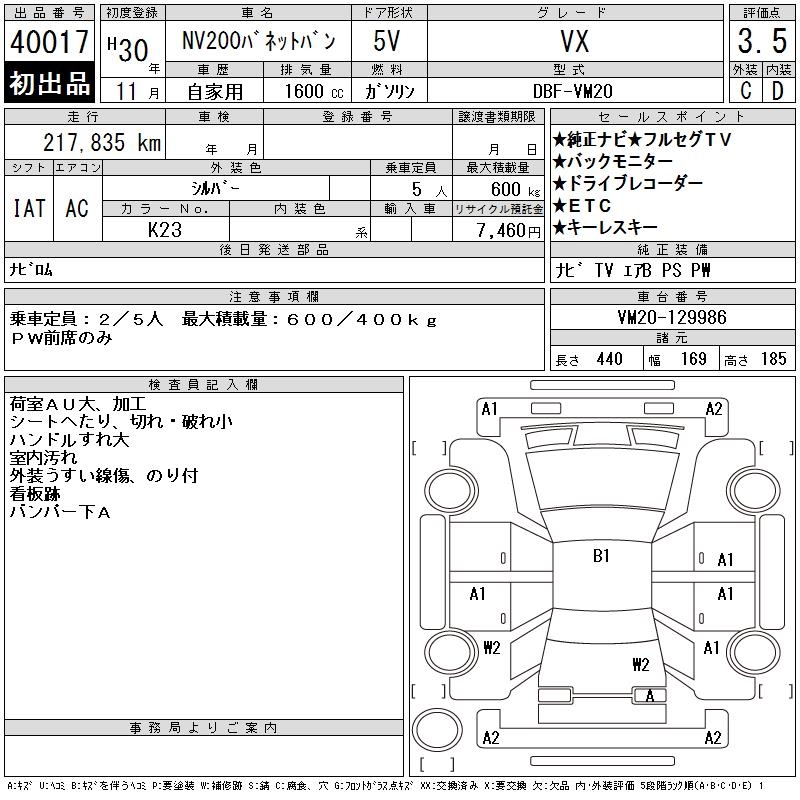 Все аукционы NISSAN NV200 VANETTE VAN