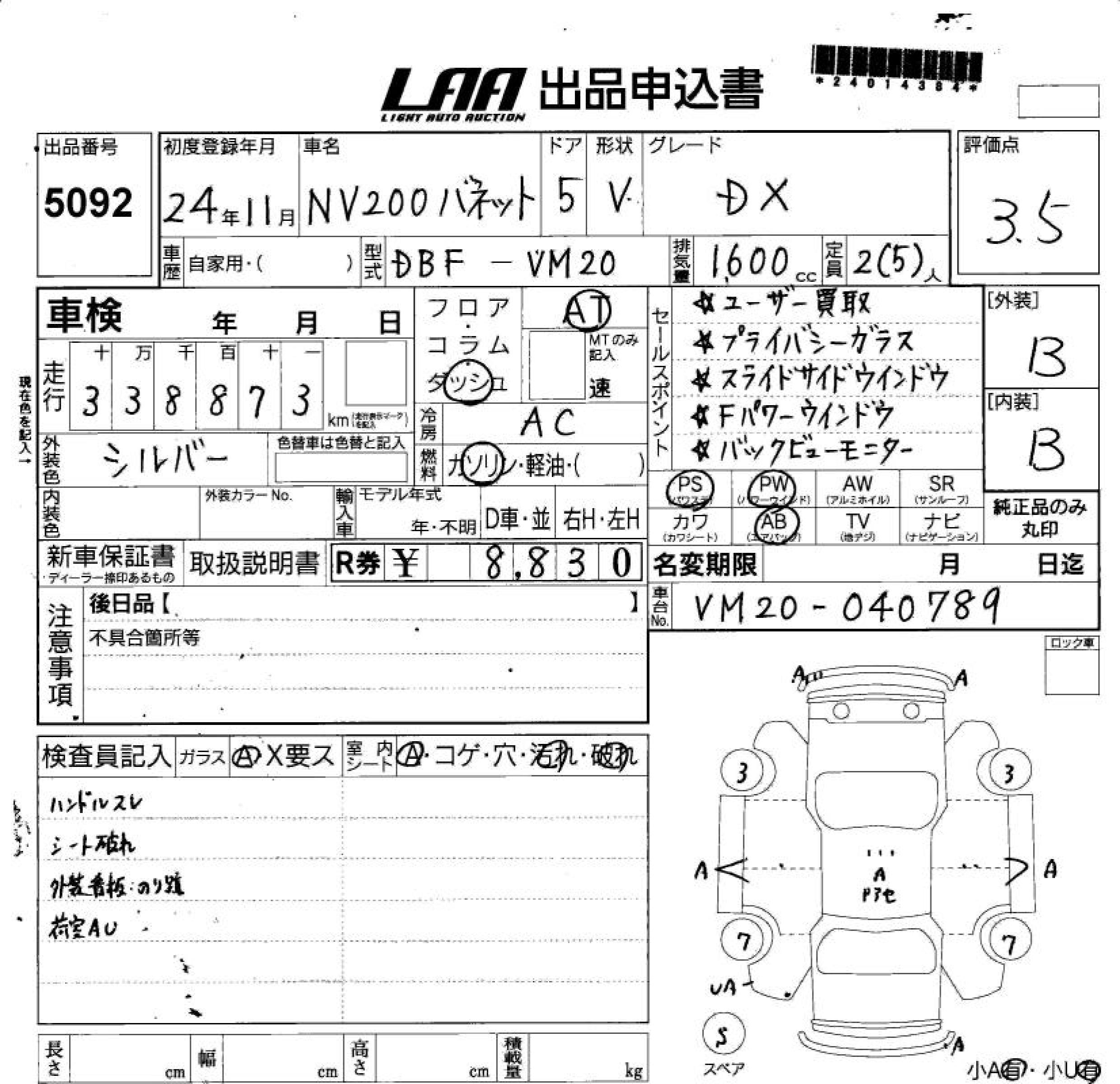 NISSAN NV200 VANETTE VAN - лот 5092