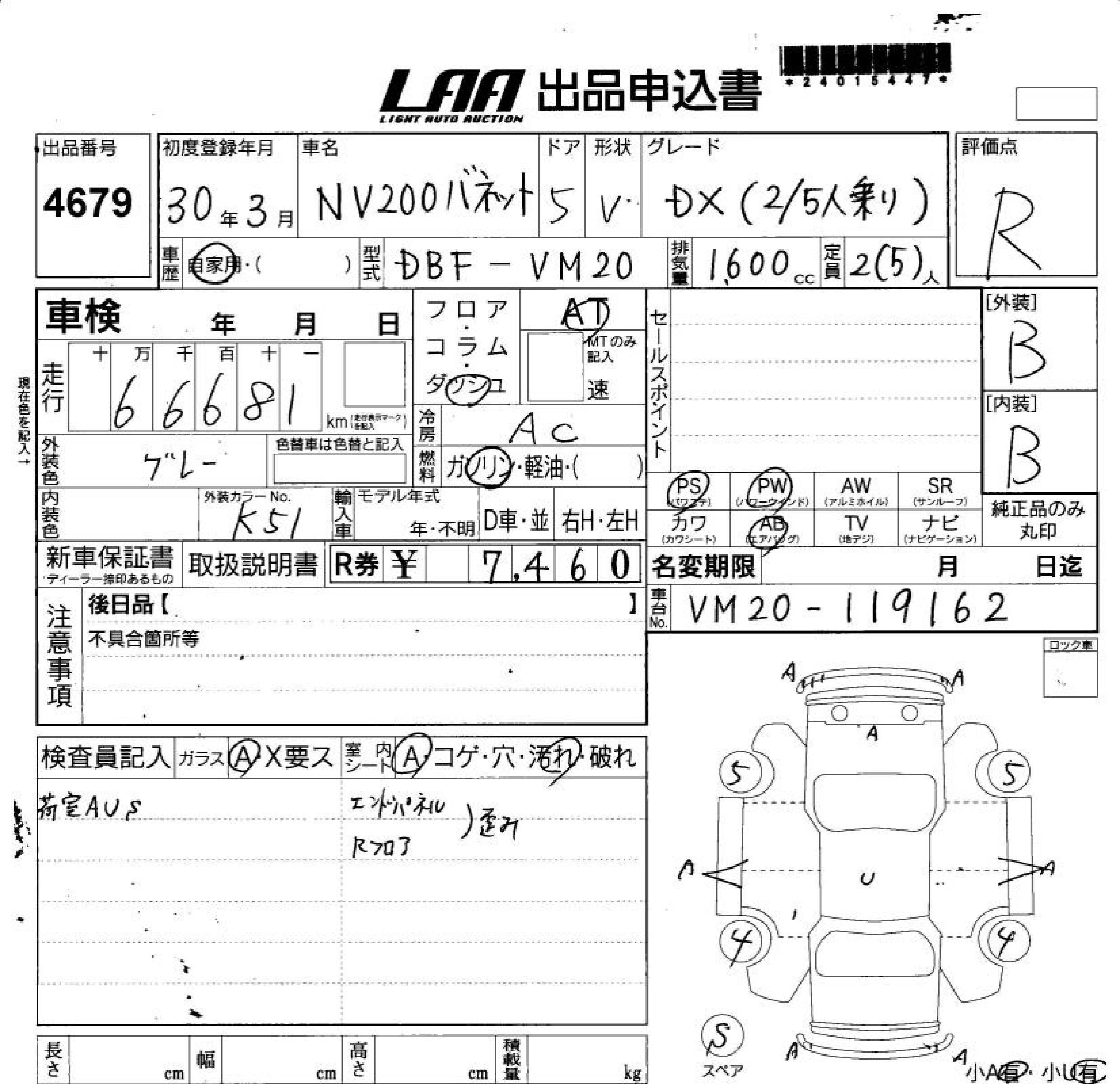 NISSAN NV200 VANETTE VAN - лот 4679