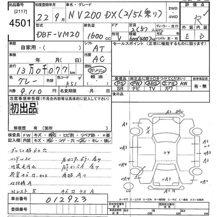 NISSAN NV200 VANETTE VAN - лот 4501
