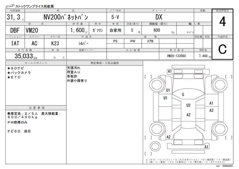 NISSAN NV200 VANETTE VAN - лот 20582