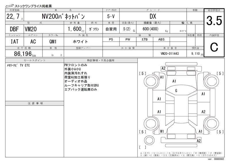 NISSAN NV200 VANETTE VAN - лот 13956