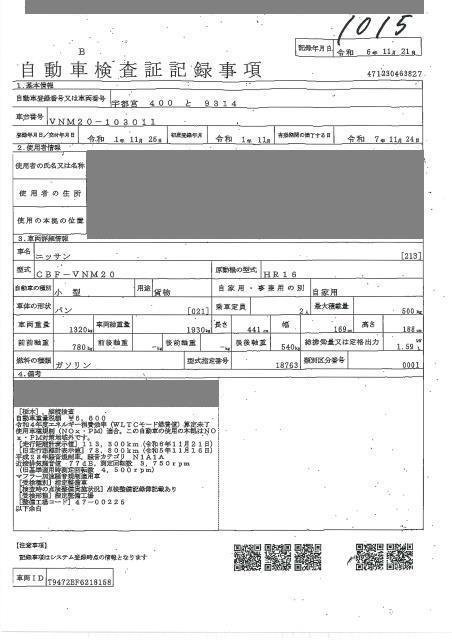 NISSAN NV200 VANETTE VAN - лот 1015