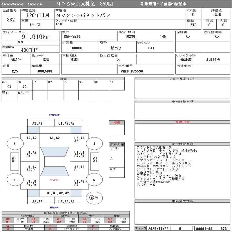 NISSAN NV200 VANETTE VAN - лот 832