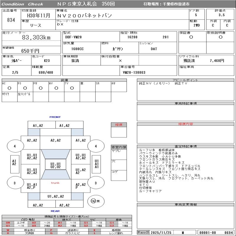 NISSAN NV200 VANETTE VAN - лот 834