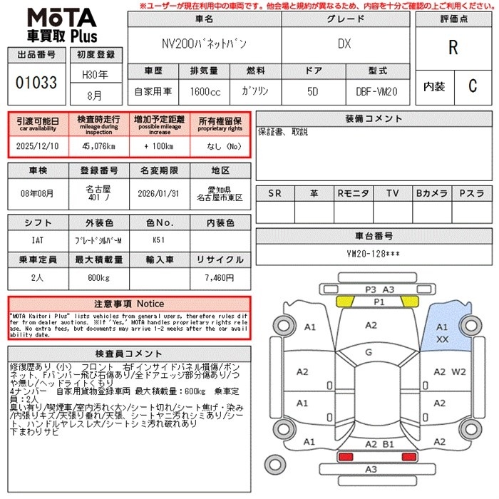 NISSAN NV200 VANETTE VAN - лот 1033