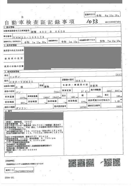 NISSAN NV200 VANETTE VAN - лот 1033