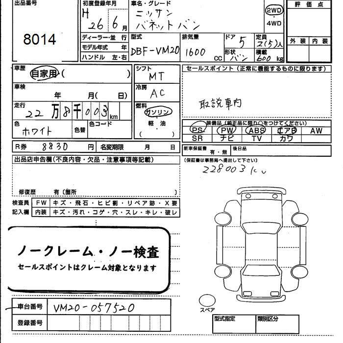 NISSAN NV200 VANETTE VAN - лот 8014