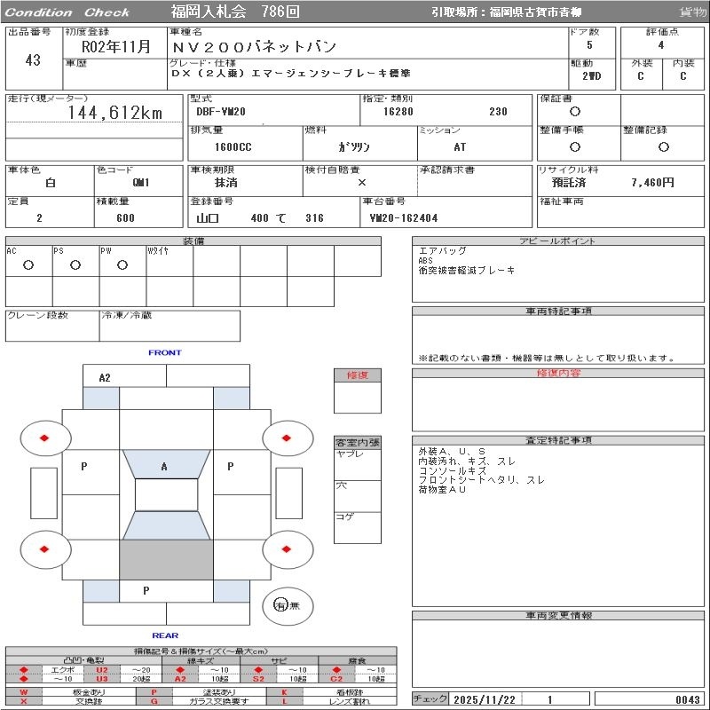 Все аукционы NISSAN NV200 VANETTE VAN