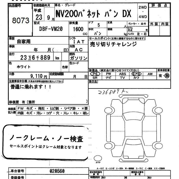 Все аукционы NISSAN NV200 VANETTE VAN