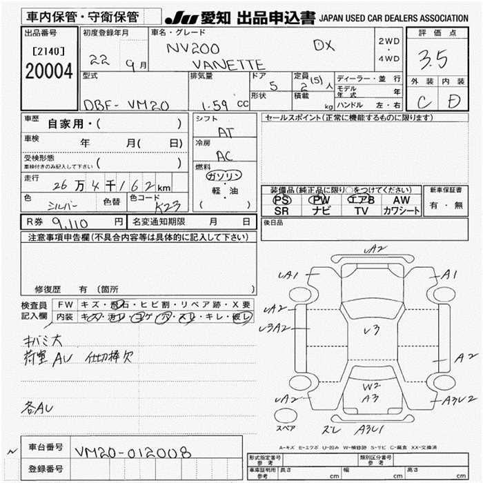 Все аукционы NISSAN NV200 VANETTE VAN