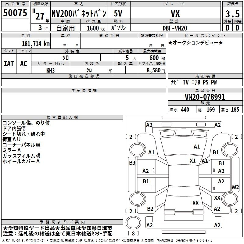 Все аукционы NISSAN NV200 VANETTE VAN