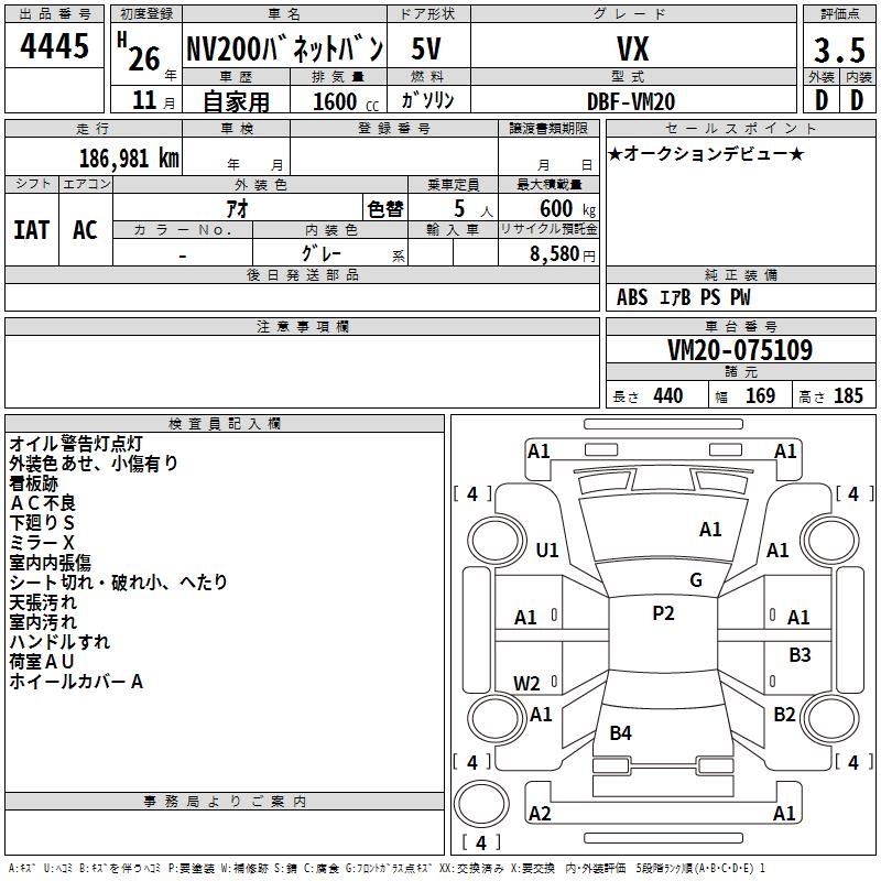 NISSAN NV200 VANETTE VAN - лот 4445