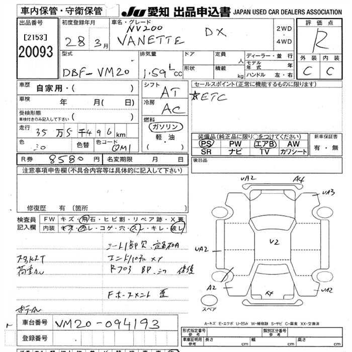 Все аукционы NISSAN NV200 VANETTE VAN