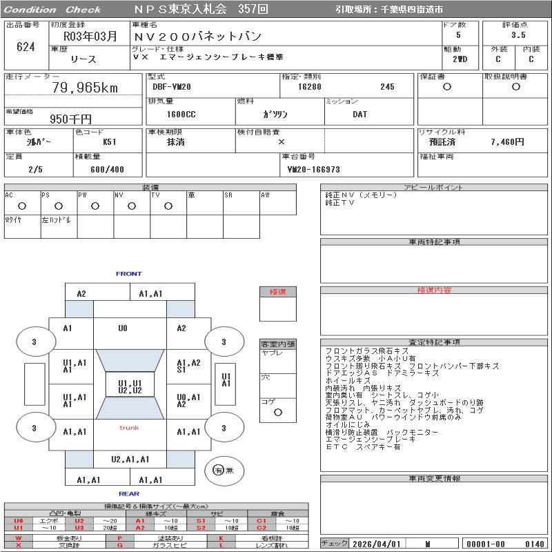 NISSAN NV200 VANETTE VAN - лот 624