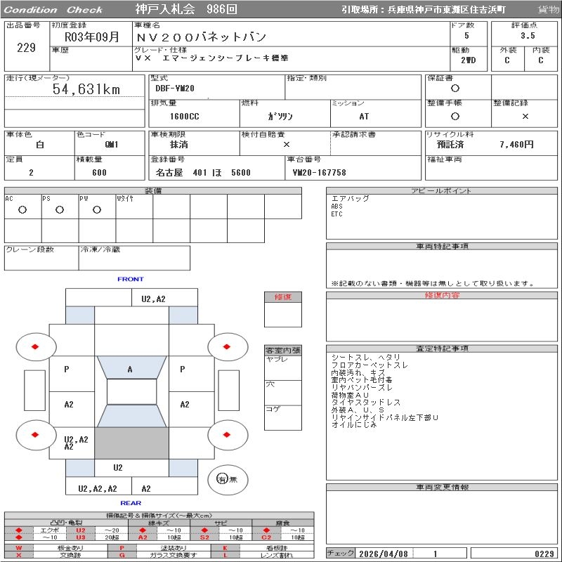 NISSAN NV200 VANETTE VAN - лот 229