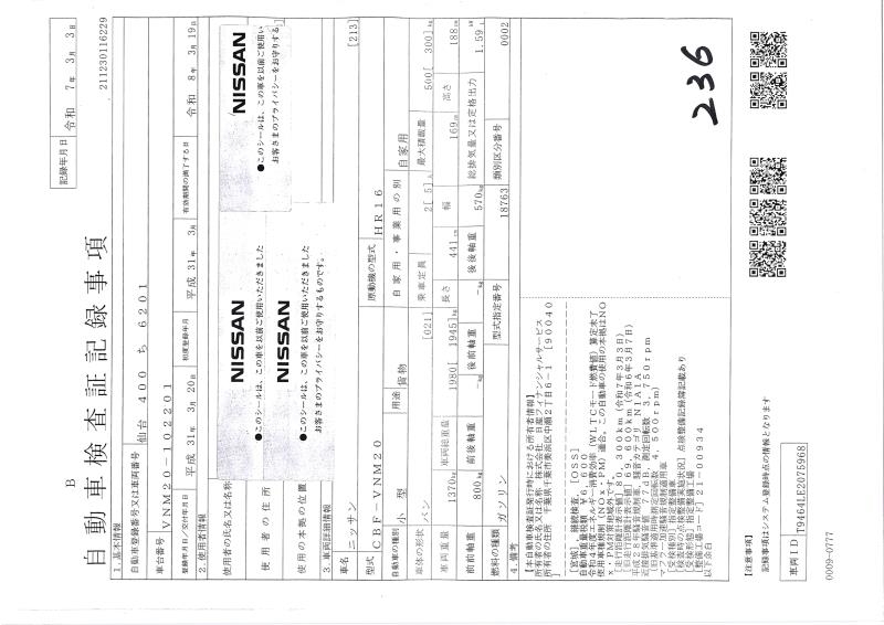 Все аукционы NISSAN NV200 VANETTE VAN