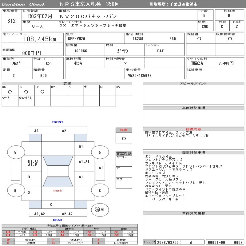 NISSAN NV200 VANETTE VAN - лот 612