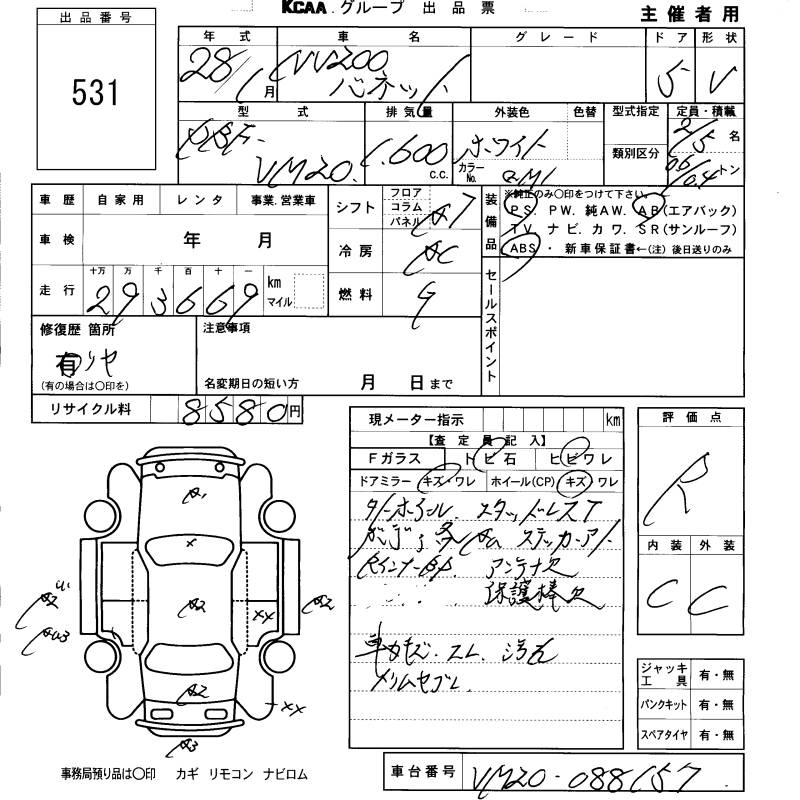NISSAN NV200 VANETTE VAN - лот 531