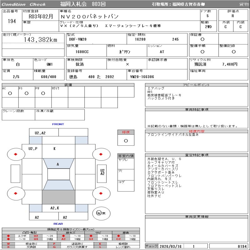NISSAN NV200 VANETTE VAN - лот 194