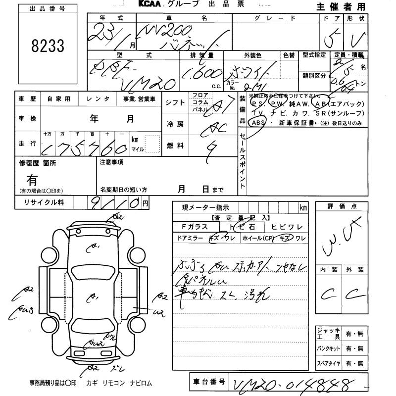 Все аукционы NISSAN NV200 VANETTE VAN