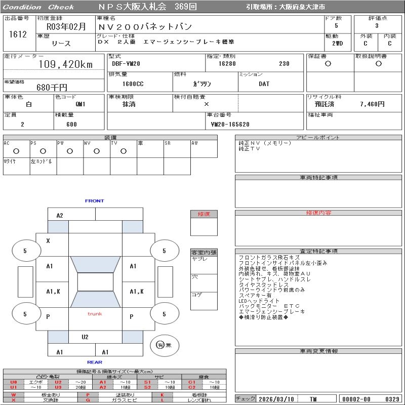 Все аукционы NISSAN NV200 VANETTE VAN