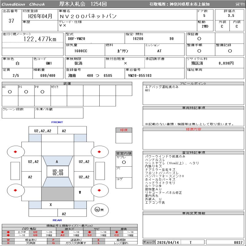 NISSAN NV200 VANETTE VAN - лот 37